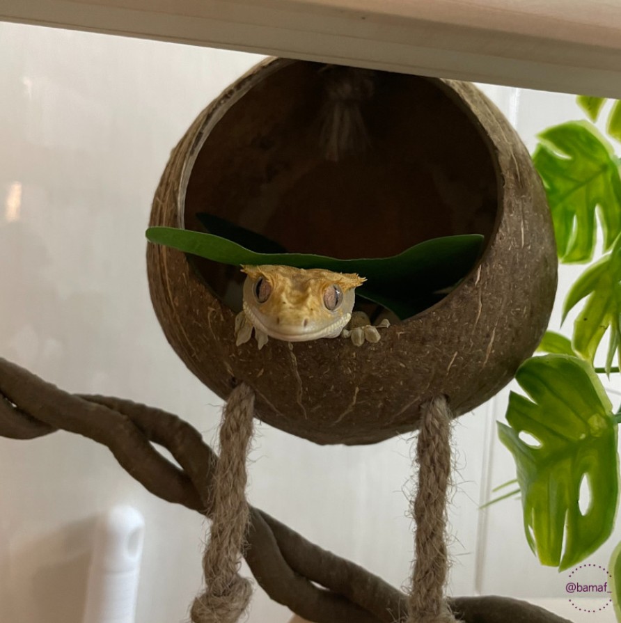 은신처는 있으면 좋은 소품이 아니라, 크레스티드게코에게는 생활의 기본입니다.